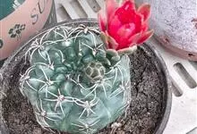 绯花玉 Speg.)是仙人掌科、裸萼球属多肉植物,植株呈扁球形,表皮墨绿色,刺针状,每个刺座有5枚灰色周刺,花生于球体顶端,夏季开花,花色有白、粉红、深红等。果实纺锤形,深灰绿色,种子黑色。…全部>>