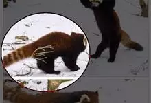 小熊猫:是小熊猫科、小熊猫属的一种动物。雌雄相似,不存在二态性。外形像猫,但较猫肥大,全身红褐色。圆脸,吻部较短,脸颊有白色斑纹。耳大,直立向前。四肢粗短,为黑褐色。尾长、较粗而蓬松,…全部>>