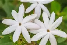 素馨花,木犀科素馨属多年生的攀援灌木植物。攀援灌木,小枝圆柱形,具棱或沟;叶对生,叶轴常具窄翼,小叶片卵形或长卵形;聚伞花序顶生或腋生,花序梗长,苞片线形,花萼无毛,裂片锥状线形,花冠白色,…全部>>