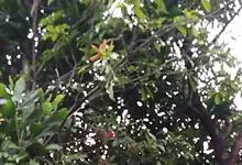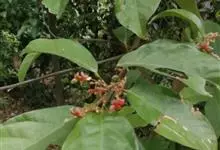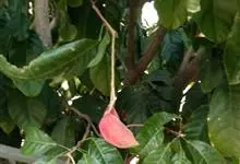 假苹婆是锦葵科苹婆属乔木植物。幼枝被毛;叶椭圆形或披针形,先端骤尖,基部钝或近圆无毛;圆锥花序腋生,花淡红色;蓇葖果鲜红色,长卵圆形或长椭圆形;种子卵圆形黑褐色;花期4-6月。…全部>>