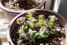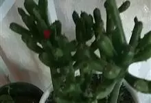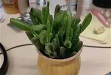 筒叶花月,是景天科青锁龙属的多年生草本植物。植株多分株,灌木状,茎较粗壮,圆柱形,表皮灰褐色;叶片肉质,互生,呈圆筒状,簇生于茎或分枝顶端,叶端呈斜截形,截面为椭圆形;花呈星状,淡白色;花期秋季。…全部>>