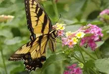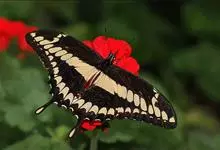 金凤蝶,是鳞翅目凤蝶科凤蝶属动物。金凤蝶为中型凤蝶,翅展70-84毫米,翅背面底色黑褐色,翅脉黑色,翅室具黄斑;前翅背面基部呈暗黄色,亚外缘为黑色,内具一列小黄斑;后翅背面亚外缘区具黑宽边,…全部>>