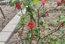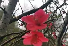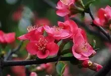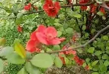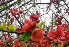 贴梗海棠Nakai)是蔷薇科、木瓜海棠属植物。落叶灌木,高达2米,枝条直立开展,有刺。叶片卵形至椭圆形,稀长椭圆形,长3-9厘米,宽1.5-5厘米。花先叶开放,3-5朵簇生于二年生老枝上。…全部>>