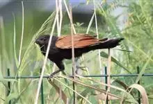 褐翅鸦鹃,是鹃形目鸦鹃科鸦鹃属的鸟类。褐翅鸦鹃的身体为黑色;头颈和胸带蓝紫色金属光泽并具黑亮的羽干纹,下胸至腹部泛金属绿光泽;两翼和肩部为棕栗色,外侧飞羽具暗色羽端,尾羽闪铜绿色光泽;虹膜赤红色,…全部>>