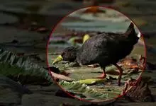黑水鸡:是鹤形目、秧鸡科的鸟类,共有12个亚种。中型涉禽,体长24-35厘米。嘴长度适中,鼻孔狭长;头具额甲,后缘圆钝;嘴和额甲色彩鲜艳。翅圆形,第2枚初级飞羽最长,或第2枚和第3枚初级飞羽等长,…全部>>