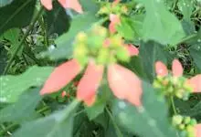 猩猩草:常绿或半常绿灌木,盆栽时株高0.5米-2米,在亚热带地区可长到6米以上。茎直立而光滑,单叶互生,卵状椭圆形至阔披针形,具不规则的深缺刻。长10-15厘米。花小,有蜜腺,排列成密集的伞房花序。…全部>>