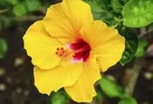 海滨木槿是锦葵科木槿属植物,落叶小乔木,株高3-5米,胸径20厘米,扁球形树冠,枝叶繁盛。厚纸质单叶互生,扁圆形、倒卵形或宽倒卵形,先端钝近平,具短突尖,基部圆形或浅心形,叶缘中上部具细圆齿,…全部>>