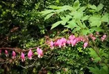 荷包牡丹 Fukuhara),是罂粟科荷包牡丹属的多年生草本植物,株高30-60厘米,具肉质根状茎;茎直立呈圆柱形;叶二回三出全裂,状似牡丹叶;总状花序顶生,基部为心形,花瓣紫红色至粉红色,稀白色,…全部>>