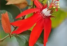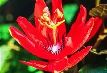 红花西番莲 是西番莲科、西番莲属多年生草质藤本,茎圆形,具卷须,长6-8米。叶互生,长圆形至长卵形,先端渐尖,基部心形,叶缘有不规则浅疏齿。花单生于叶腋,花柄长约4-5厘米,花冠红色,花瓣长披针形,…全部>>