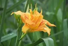 重瓣萱草 L. var. kwanso Regel),百合科萱草属植物。根近肉质,中下部有纺锤状膨大;花桔黄色,花被裂片多数,雌雄蕊发育不全。花被管较粗短,长2-3厘米;内花被裂片宽2-3厘米。…全部>>