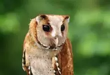 栗鸮:是鸟纲、草鸮科的猫头鹰。体长约29厘米,体重311-360克。是一种中等体型的红褐色鸮。其心形脸庞及时而竖起的“耳朵”与仓鸮甚似。上体红褐而具黑白点斑,下体皮黄偏粉具黑点,脸近粉色。虹膜深褐色,…全部>>