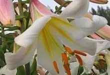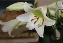 麝香百合:在中国台湾亦称铁炮百合。鳞茎球形或近球形,高2.5-5厘米;鳞片白色。茎高45-90厘米,绿色,基部为淡红色。叶散生,披针形或矩圆状披针形,两面无毛。花单生或2-3朵;花喇叭形,白色,筒外…全部>>
