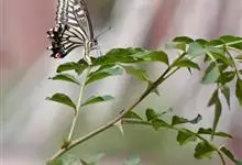 柑橘凤蝶是鳞翅目凤蝶科凤蝶属昆虫,又称柑橘黄凤蝶、花椒凤蝶、燕凤蝶。中型凤蝶。翅底色黑褐色,翅脉黑色,各翅室内具长短不一的黄白色斑;前翅中室具4条近乎平行的黄色线纹,后翅臀区具一枚橘红色的圆斑,…全部>>