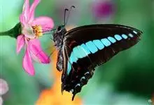 青带凤蝶Graphium sarpedon ,又名青凤蝶,是最普遍的中型凤蝶,飞行速度很快。青带凤蝶的翅膀中央有许多浅蓝色的斑点,很整齐地排列成一条直线。这些斑点由上而下逐渐变大,就像一条青色的带子。全部>>