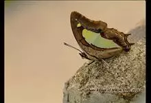大二尾蛱蝶两翅正面黑色,中域有一浅绿色大型宽带纹,两翅反面浅绿色,中域有一缀黑边的褐色弧纹,亚外缘还有一深褐色横纹,后翅各有尾突两条,…全部>>