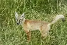 沙狐:体长50-60厘米,尾长25-35厘米,体重约2-3千克。比赤狐略小。是一种长腿,红灰色的狐狸。脸短而吻尖,耳大而尖,耳基宽阔。背部呈浅棕灰色或浅红褐色,底色为银色。下颏至胸腹部呈淡白色至黄色。…全部>>