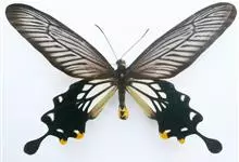 宽尾凤蝶是凤蝶科、宽尾凤蝶属昆虫。翅展115-130毫米。体、翅黑色,翅面散生黄色鳞片;前翅前缘色深,后翅外缘波状,波谷红色,。雄性外生殖器上钩突窄小,骨化。雌性外生殖器产卵瓣较长;交配孔宽大,…全部>>