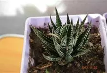 条纹十二卷 Haw.)是芦荟科十二卷属植物,为多年生肉质草本植物。植株高度10-15厘米,其呈莲座状生长;叶片紧密轮生在茎轴上,柔软多汁,呈长三角状披针形,极肥厚;叶面光滑、扁平,色深绿;叶背突起,…全部>>