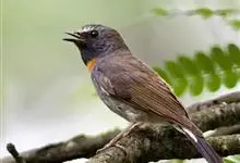 橙胸姬鹟:体长12-16厘米,是一种体型略小的林栖型鹟。尾黑而基部白,上体橄榄褐色,额具一白色横带,两端向上延伸至眼上形成眉斑。翼橄榄色,下体灰。成年雄鸟额上有狭窄白色并具小的深红色项纹,常不明显。…全部>>