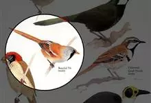 文须雀,别称髭雀、文须山雀,属雀形目、鹆鸟科、画眉亚科。眼先及髭纹黑色,头顶暗灰,后颈至覆尾羽深金黄色。小覆翼羽为灰色,中覆翼羽黑色,大覆翼羽外侧为棕褐色而内侧为黑色。尾呈棕色而中间的一对淡黄,…全部>>