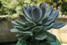 蓝石莲是景天科、拟石莲花属的多肉植物。茎部粗壮,成熟植株茎部木质化。叶片莲座型密集排列,株径不会很大,叶片相对较薄,常年绿色,表面布有白色粉末,中部凹陷,呈倒水滴状。叶尖较尖,叶缘光滑无褶皱,…全部>>
