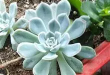 蓝石莲是景天科、拟石莲花属的多肉植物。茎部粗壮,成熟植株茎部木质化。叶片莲座型密集排列,株径不会很大,叶片相对较薄,常年绿色,表面布有白色粉末,中部凹陷,呈倒水滴状。叶尖较尖,叶缘光滑无褶皱,…全部>>