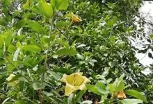 金杯藤 P.S. Green)是茄科、金杯藤属多年生常绿大型藤本。茎及枝条粗壮。叶片互生。长椭圆形。先端突尖。叶面有光泽。全株具有毒乳汁。花顶生,单朵或数朵,花苞棒槌状。从绿色转变为淡黄色。…全部>>