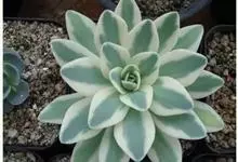 芙蓉雪莲是景天科拟石莲花属的植物。由于叶片表面覆盖着一层厚霜粉,通常呈现出白色;日照增多,温差增大后叶缘、叶尖会呈现出粉红色或橙红色。…全部>>