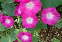 五爪金龙 Sweet),旋花科番薯属多年生缠绕草本植物。茎细长,有细棱;叶片为掌状;花冠紫红色、紫色或淡红色、偶有白色,漏斗状;蒴果近球形。花期5~12月。五爪金龙的叶子类似掌状,有5至7个裂痕,…全部>>