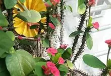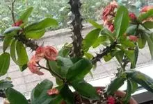 虎刺梅:别称铁海棠,是蔓生灌木植物。茎多分枝,长60-100厘米,直径5-10毫米,具纵棱,密生硬而尖的锥状刺,刺长1-1.5厘米,直径0.5-1.0 毫米,常呈3-5列排列于棱脊上,呈旋转。叶互生…全部>>
