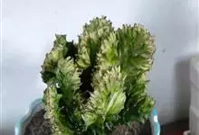 麒麟掌,是大戟科大戟属多年生植物。为金刚纂的带化变异变种。麒麟掌的株乳汁丰富;它的茎圆柱状,上部多分枝,绿色;叶互生,稀少,常生于嫩枝顶端脊上,倒卵形、倒卵状长圆形或匙形,顶端钝圆,具小凸尖,全缘,…全部>>