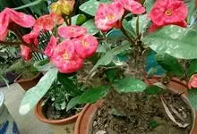 虎刺梅:别称铁海棠,是蔓生灌木植物。茎多分枝,长60-100厘米,直径5-10毫米,具纵棱,密生硬而尖的锥状刺,刺长1-1.5厘米,直径0.5-1.0 毫米,常呈3-5列排列于棱脊上,呈旋转。叶互生…全部>>