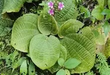 虎颜花是野牡丹科虎颜花属植物。多年生常绿草本,茎极短,被红色粗硬毛,具粗短的根状茎,略木质化;叶基生,叶片膜质,心形,顶端近圆形,边缘具细齿,基部心形,长宽20-30厘米或更大,叶面无毛,…全部>>