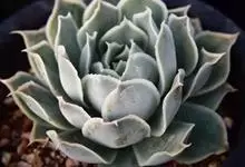 蓝石莲是景天科、拟石莲花属的多肉植物。茎部粗壮,成熟植株茎部木质化。叶片莲座型密集排列,株径不会很大,叶片相对较薄,常年绿色,表面布有白色粉末,中部凹陷,呈倒水滴状。叶尖较尖,叶缘光滑无褶皱,…全部>>