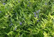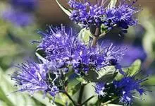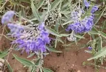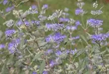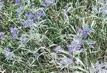 蒙古莸:为唇形科莸属落叶小灌木。常自基部即分枝,嫩枝紫褐色,圆柱形,有毛,老枝毛渐脱落。叶片厚纸质,线状披针形或线状长圆形,背面密生灰白色绒毛。聚伞花序腋生,无苞片和小苞片,花萼钟状,花冠蓝紫色。…全部>>