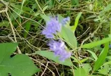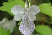 单花莸 P. D. Cantino),为唇形科、四棱草属。多年生蔓性草本,茎基部木质化,枝四方形。叶对生,叶边缘具4~6对钝锯齿,两面被柔毛和腺点。花单生叶腋,5中裂,蓝白色,有紫色条纹和斑点,…全部>>