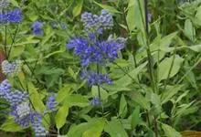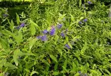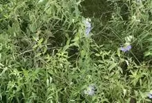 蒙古莸:为唇形科莸属落叶小灌木。常自基部即分枝,嫩枝紫褐色,圆柱形,有毛,老枝毛渐脱落。叶片厚纸质,线状披针形或线状长圆形,背面密生灰白色绒毛。聚伞花序腋生,无苞片和小苞片,花萼钟状,花冠蓝紫色。…全部>>