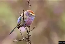 花彩雀莺:体长9-12厘米,是一种毛茸茸偏紫色的雀莺。顶冠棕色,眉纹白。尾长,羽毛松软。前额有一宽阔的眉纹淡黄色,头顶栗色或棕红色,有的具紫蓝色光泽。背灰色,腰和尾上覆羽辉紫蓝色,飞羽灰褐色。…全部>>