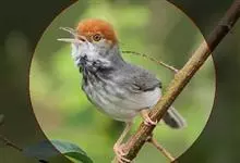 黑喉缝叶莺:体长11.5厘米,是一种小型的顶冠棕色、腹部白色的莺。尾甚长而常上翘,臀黄色,具特征性的偏黑色喉,上体橄榄绿色,头侧灰色。雌鸟色暗,头少红色且喉少黑色。与长尾缝叶莺的区别在后顶冠亦为棕色,…全部>>