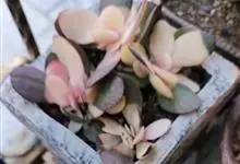 江户紫,景天科伽蓝菜属草本植物,是多年生草本花卉。花白色,但栽培中很少能见到花,常作观叶植物栽培。…全部>>