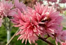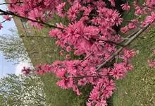 菊花桃是蔷薇科、桃属落叶灌木或小乔木,树干灰褐色,小枝细长,无毛,有光泽,绿色,向阳处转变成红色,冬芽圆锥形,常个簇生,中间为叶芽,两侧为花芽。叶片椭圆状披针形。花生于叶腋,粉红色或红色,重瓣,…全部>>
