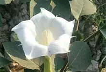 曼陀罗,茄科曼陀罗属一年生大型草本植物,全株光滑。有臭气;叶呈广卯形,边缘具不规则波状浅齿裂;花单生于枝杖间或叶腋,直立,有短梗;花萼是筒状裂片三角形,颜色为白色或淡紫色;果实为蒴果卵状,…全部>>