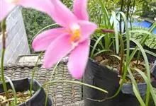 小韭兰学名韭菜莲又名风雨花、菖蒲莲、红玉帘和旱水仙,多年生草本,鳞茎卵球形,基生叶常数枚簇生,线形,扁平,花单生于花茎顶端,下有佛焰苞状总苞,花玫瑰红色或粉红色,蒴果近球形,种子黑色,花期夏秋。韭莲…全部>>