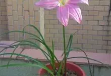 小韭兰学名韭菜莲又名风雨花、菖蒲莲、红玉帘和旱水仙,多年生草本,鳞茎卵球形,基生叶常数枚簇生,线形,扁平,花单生于花茎顶端,下有佛焰苞状总苞,花玫瑰红色或粉红色,蒴果近球形,种子黑色,花期夏秋。韭莲…全部>>