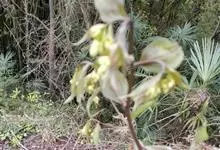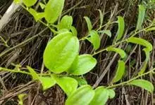 菝葜,菝葜科菝葜属 多年生藤本落叶攀附植物,茎干较粗,嫩白色,呈圆柱形,表面带有小刺;叶子较大,呈椭圆形,深绿色,表面光滑无毛,叶柄较长;花朵较小,纯白色,花瓣数较少,呈多边形分布;果实较小,红褐色,…全部>>
