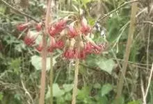 牛尾菜是菝葜科菝葜属多年生草质藤本。具根状茎;茎中空,干后凹瘪,具槽,无刺;叶较厚,卵形、椭圆形至长圆状披针形,背面绿色,无毛。伞形花序有花多朵,总花梗纤细。浆果球形,直径7-9毫米,成熟时黑色。…全部>>