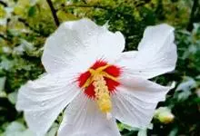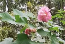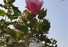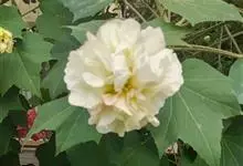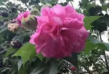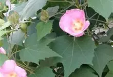 木芙蓉,锦葵科木槿属落叶灌木或小乔木。小枝上有细绒毛;叶片为卵状心形,托叶为披针形,常早落;花单生,花萼为钟形,花冠初为白色或淡红色,后逐渐变为深红色;果实为扁球形,有淡黄色的毛附着。花期8到10月。…全部>>