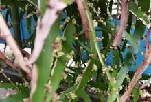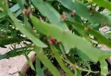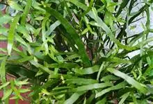 竹节蓼 Meisn.)是蓼科千叶兰属常绿灌木。株高可达1-3米;老枝圆柱形,暗褐色,幼茎扁平,亮绿色,形似叶片,有节及纵沟;叶退化,幼年有少量披针形叶片,端渐尖,基部楔形,全缘或近基部有锯齿,…全部>>
