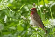 普通朱雀是雀形目雀科朱雀属鸟类,又名红朱雀、马料、青麻料。雄鸟上体红色,下体淡红色;头部、喉部、胸部及腰部亮红色;背部褐色染红色;两翼及尾黑褐色,羽缘染红色。雌鸟上体橄榄褐色,下体近白色,…全部>>