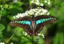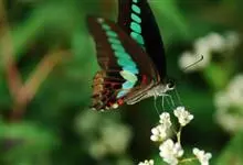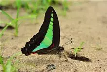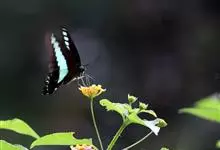 青带凤蝶Graphium sarpedon ,又名青凤蝶,是最普遍的中型凤蝶,飞行速度很快。青带凤蝶的翅膀中央有许多浅蓝色的斑点,很整齐地排列成一条直线。这些斑点由上而下逐渐变大,就像一条青色的带子。全部>>